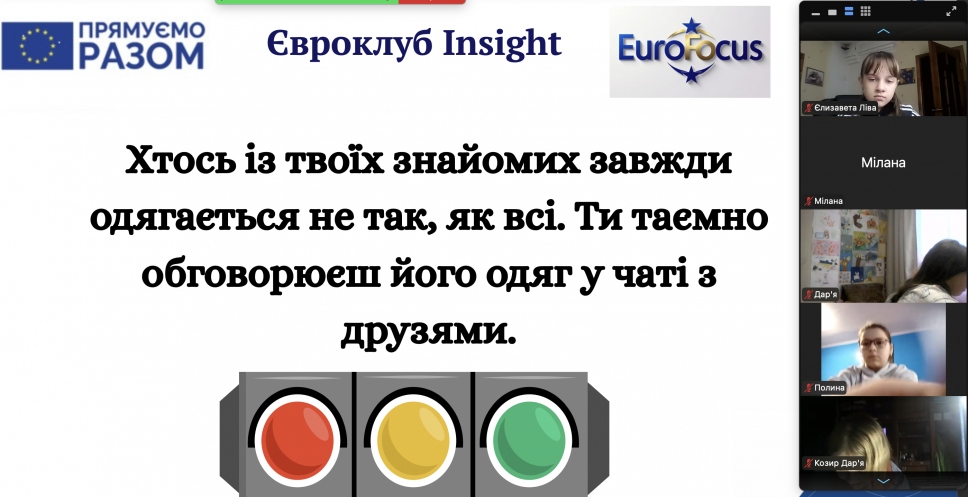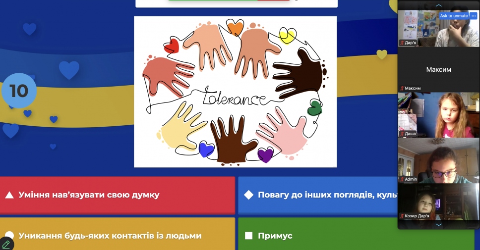 Онлайн-тренінг «Толерантність та міжкультурний діалог» серед учнів 5 класів пройшов в межах заходів проєктів «Європа без бар'єрів» та «EuroFocus» за підтримки Представництва ЄС в Україні.